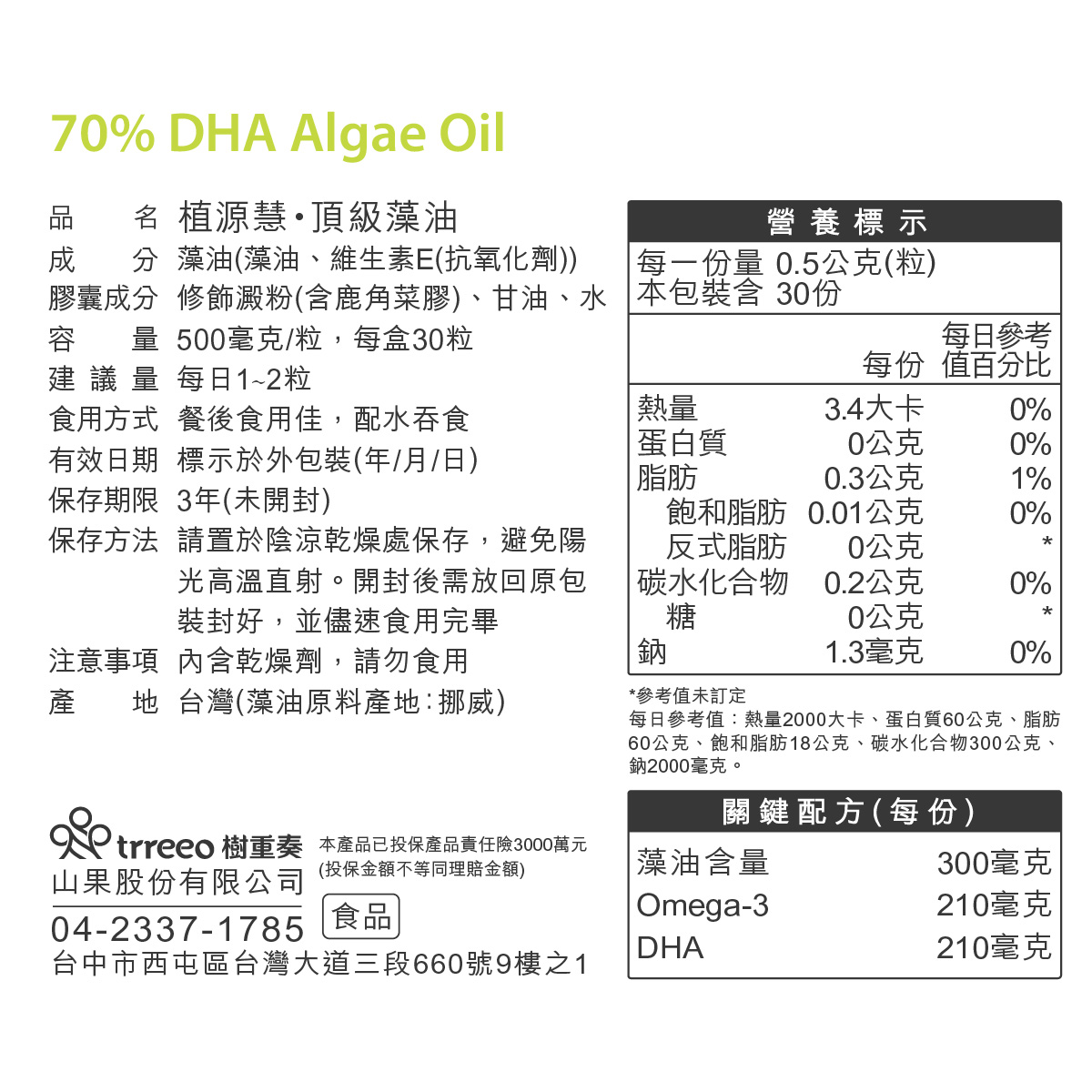 • 市售高規1粒含210mg DHA