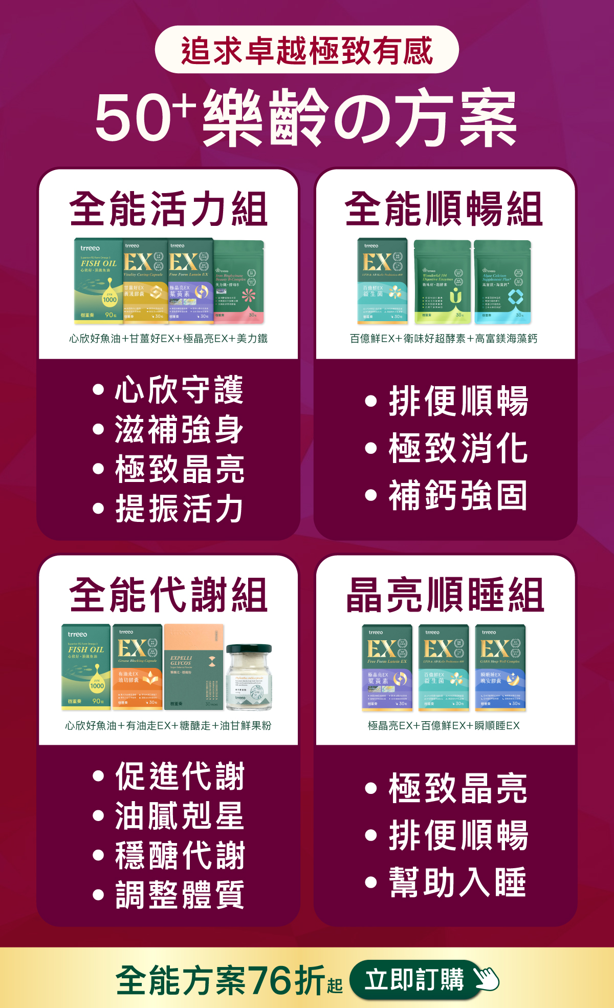 50歲後很多狀態都大不如前,可能常常虛累累、可能消化道機能不佳、可能代謝不穩定、可能從早到晚都不太對勁,希望補充些保健品。