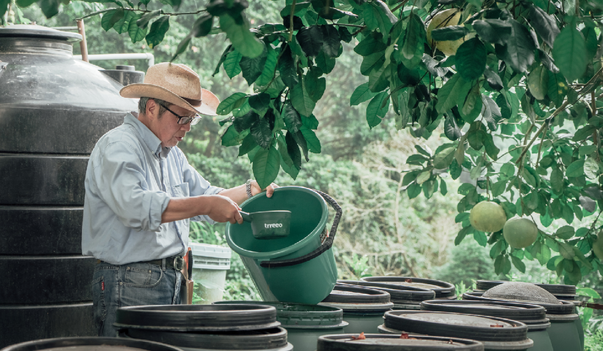 樹重奏農場堅持不使用農藥、化肥及人工除草劑,取而代之的是選用農場蔬果,經微生物發酵成酵素,再澆灌回土地的「酵道自然農法」。