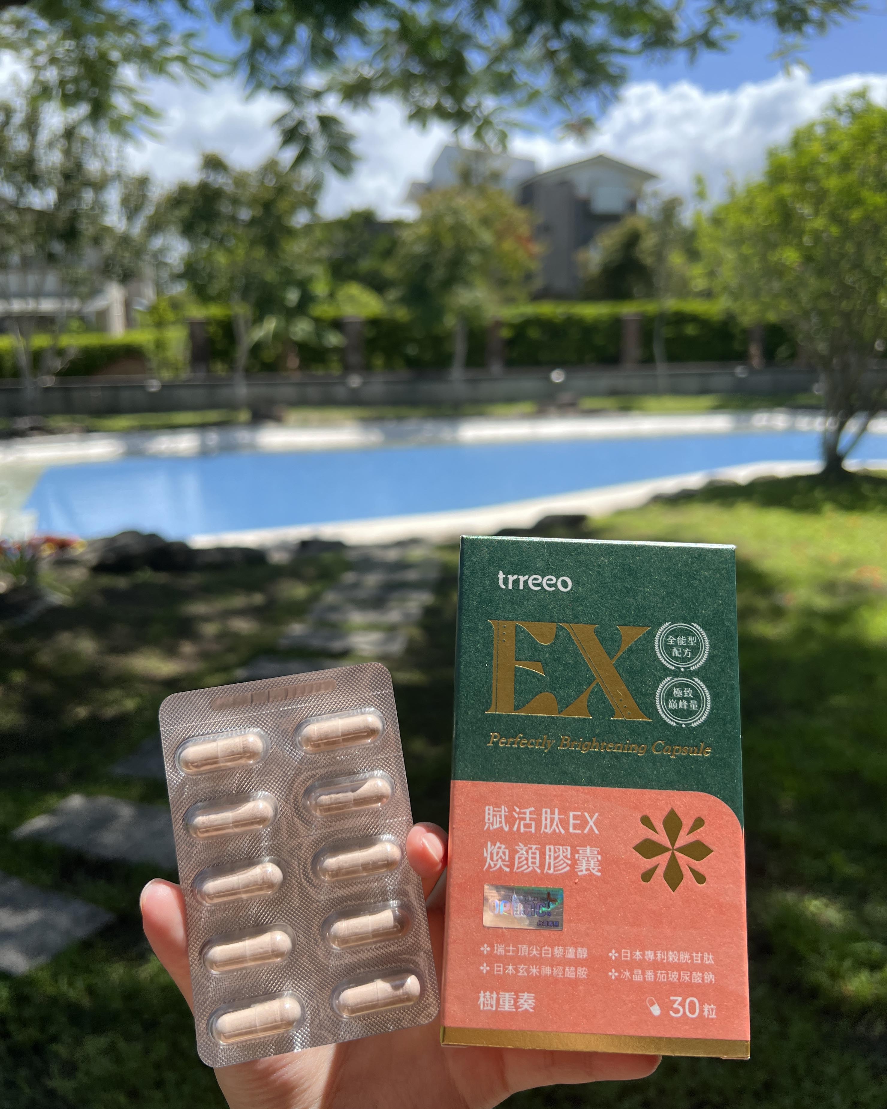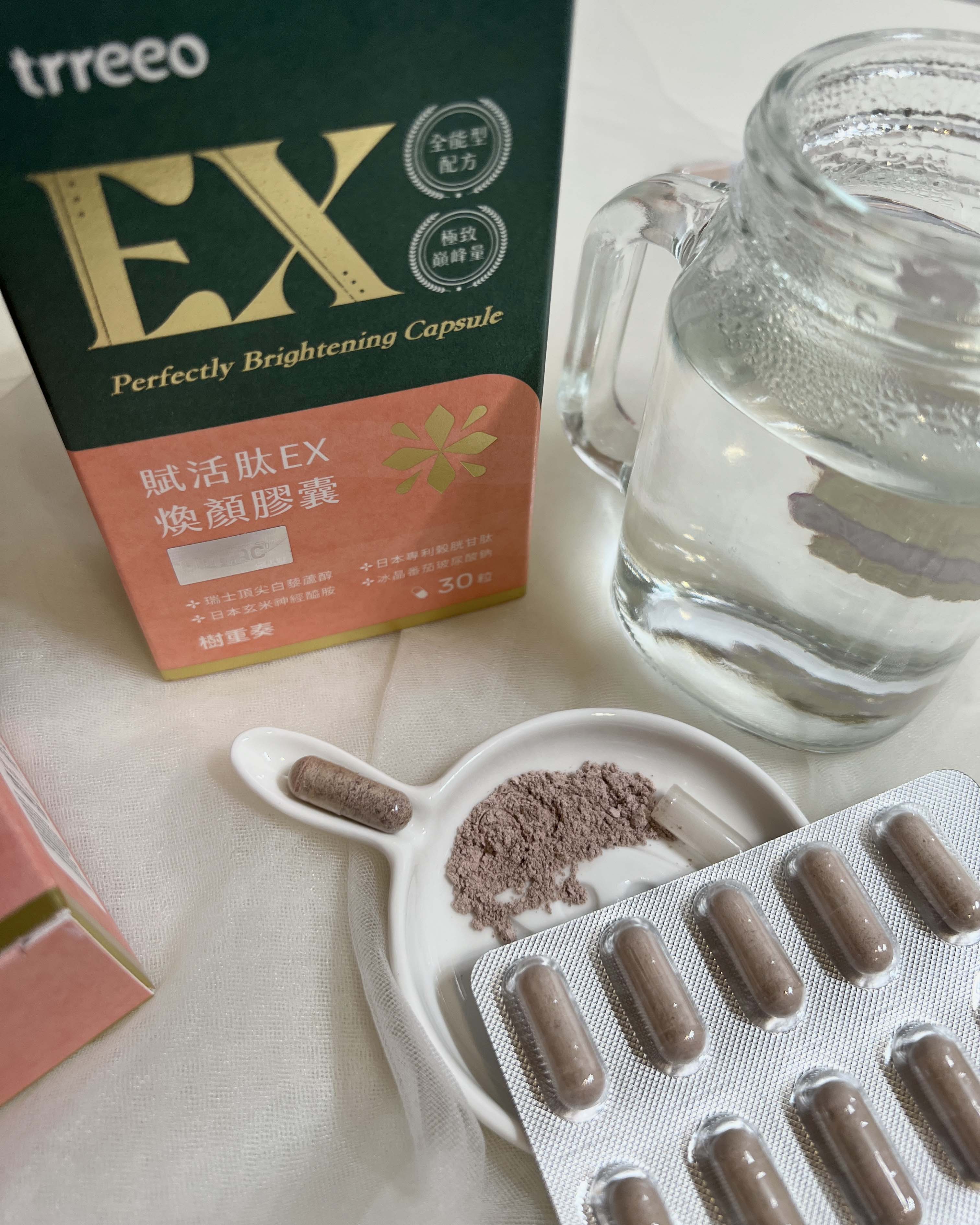 養出容光煥發的殺手鐧——擁有9大奢光美顏極致精華的樹重奏「賦活肽EX煥顏膠囊」,穀胱甘肽、白藜蘆醇、玻尿酸鈉、神經醯胺、冰晶番茄、血橙萃取、紅石榴 等通通有!