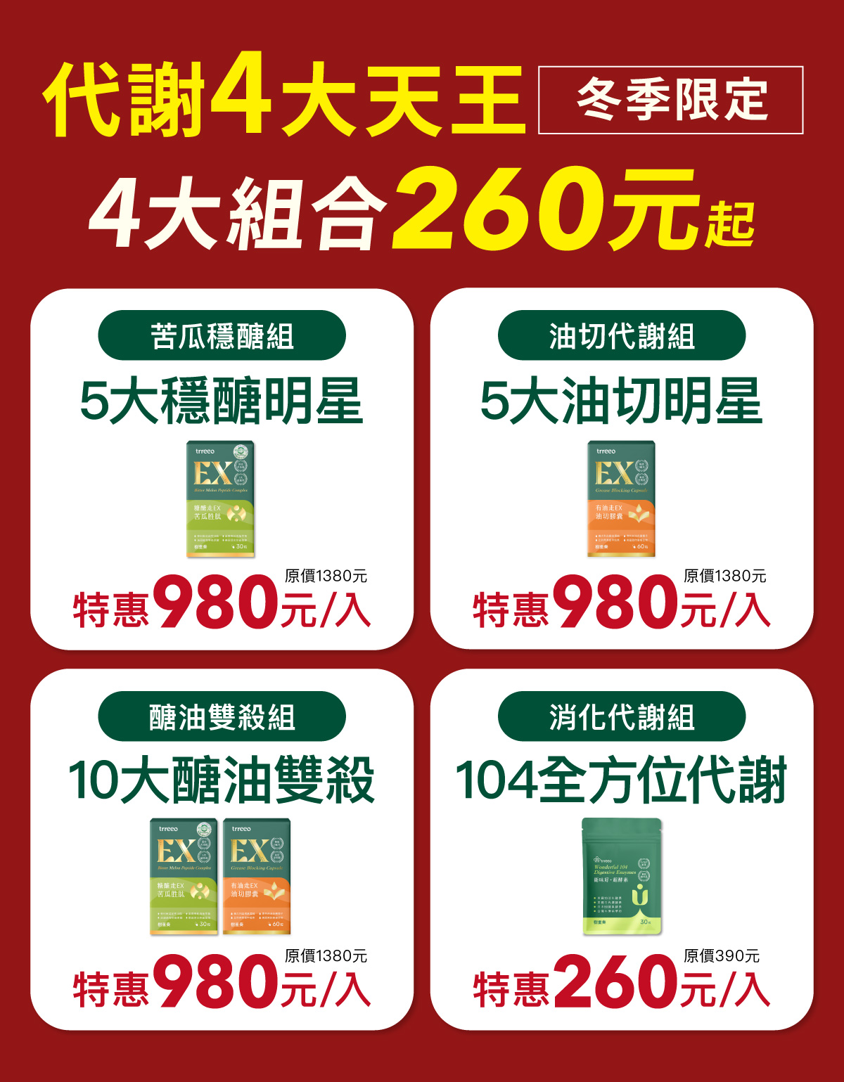 阻澱油切、穩醣代謝4大天王!冬季特惠!