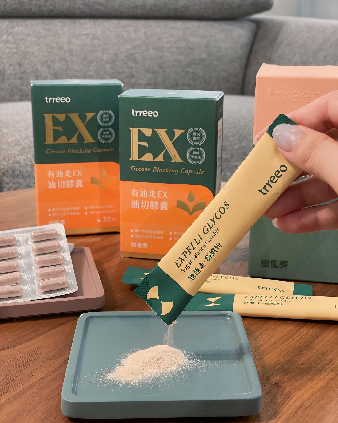 我平日會在午、晚餐餐前15分鐘吃1包「糖醣走穩纖粉」,加上 2粒「有油走EX油切膠囊」,聚餐前再加強補充,它們就是我安心吃大餐的秘密武器