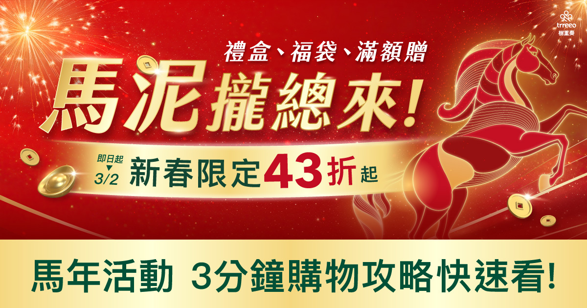 除了以上馬年新春優惠外,因為樹重奏剛完成新官網的搬遷,為大家獻上兩大優惠方案。
