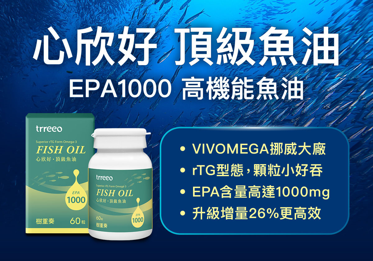 心欣好頂級魚油是一款「高EPA機能型魚油」,為挪威品牌魚油VIVOMEGA來源,小型魚種先進技術萃取、rTG型態濃度高好吸收、80%以上高濃度EPA、顆粒小好吞、新鮮度高無腥味,增量126%規格,一天2粒可達標1000mg以上的EPA,適合有代謝需求、循環暢快的您!