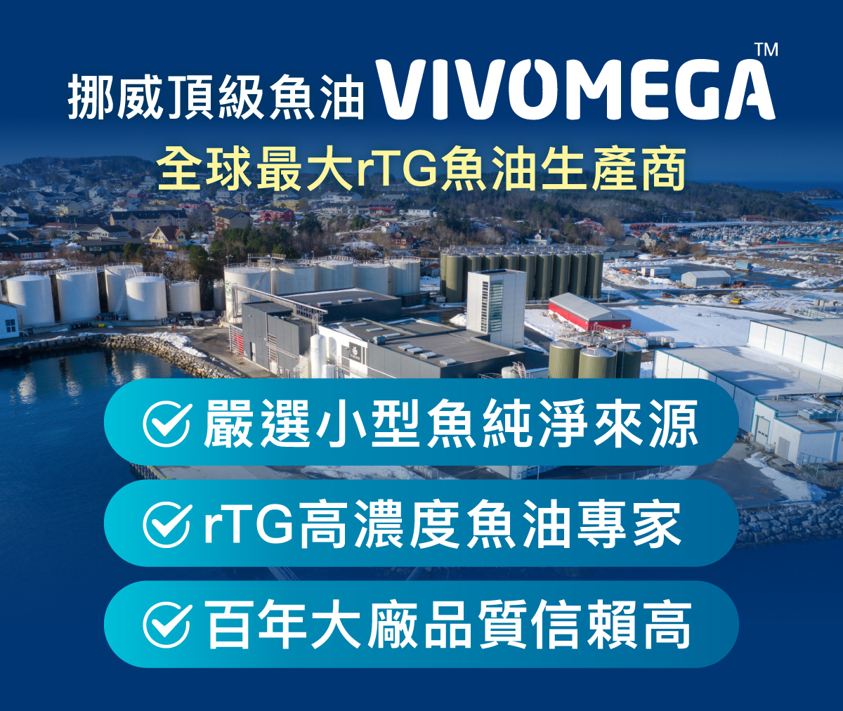 其中挪威品牌魚油VIVOMEGA以品質卓越著稱,因為其為全世界最大的rTG魚油生產商,儲存設備高達32,000噸,且有百年以上的歷史,國內外許多的知名品牌魚油,背後的供應商,都是VIVOMEGA。