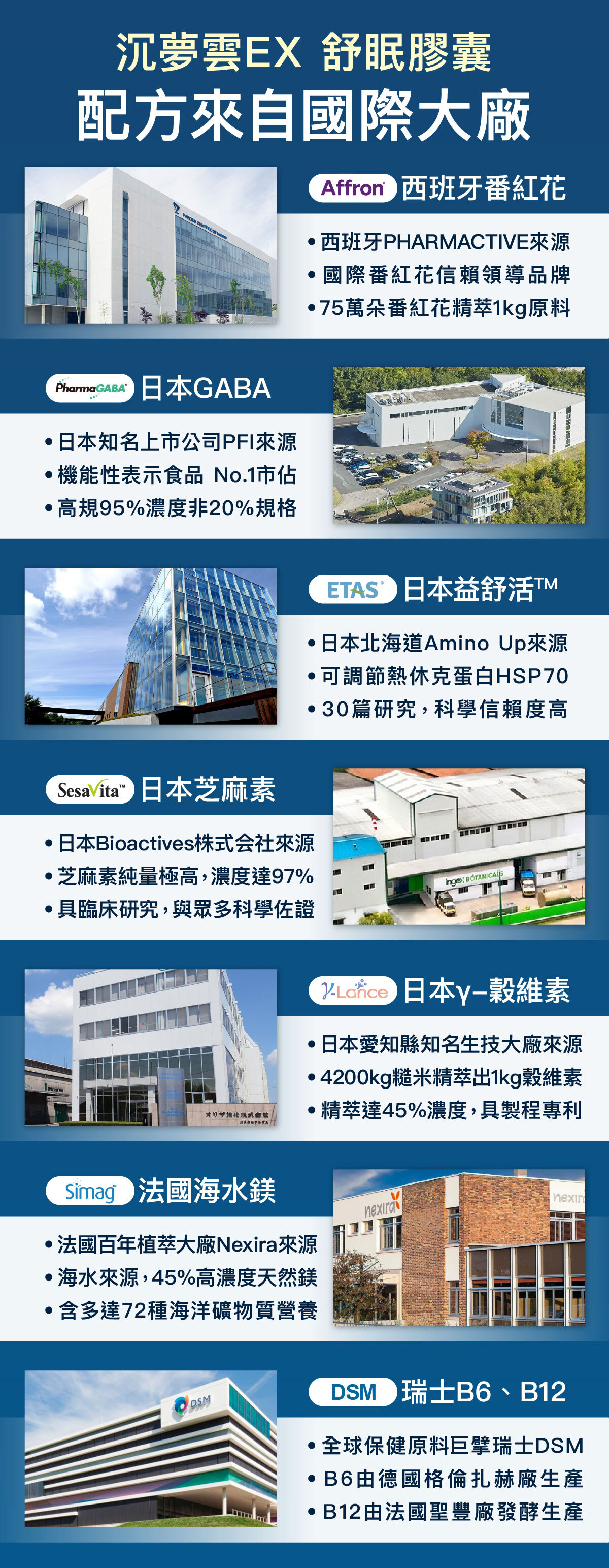 沉夢雲EX舒眠膠囊的原料,多來自於國際頂尖大廠,以下帶您快速暸解!