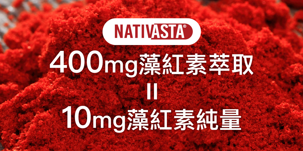 以樹重奏「極晶亮EX葉黃素」配方來說,有感來源為「高濃度花青素」和「高含量藻紅素」,「NATIVASTA藻紅素」濃度為2.5%,每100g的藻紅素萃取會有2.5mg的藻紅素純量,如果添加了400mg,藻紅素純量就有10mg,達研究有感添加量。