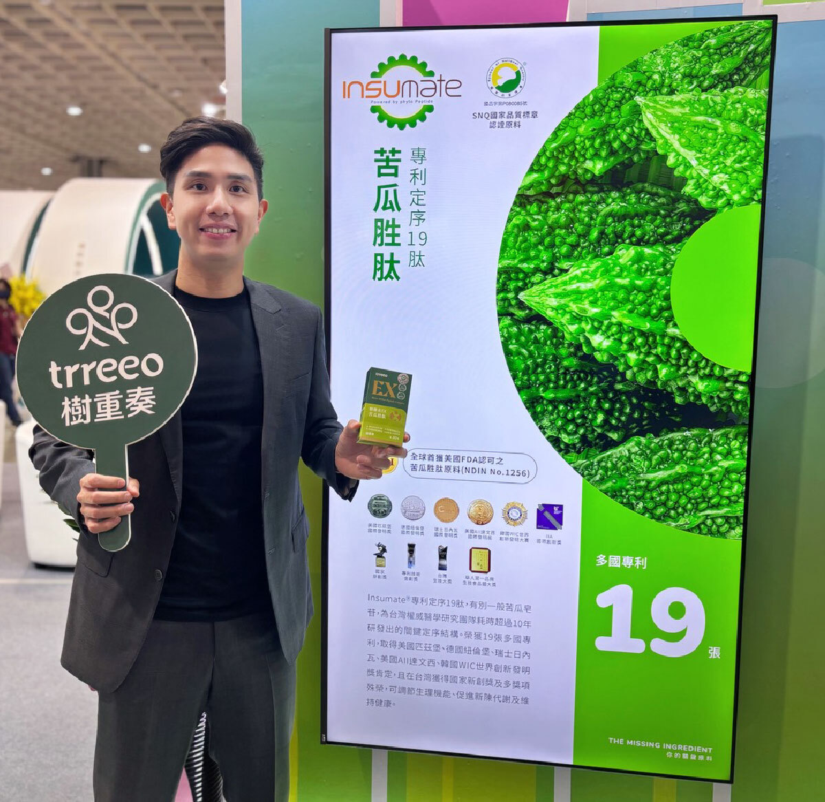 其實世界上苦瓜最多的地方,來自印度與中國,而德國、美國可能不太產苦瓜,故大家看到的德國、美國苦瓜多為在該國申請的專利。以Insumate®苦瓜萃取這款台灣之光苦瓜胜肽來看,其具備多達19張的國際專利,在行銷上也可說是德國、美國或日本專利苦瓜胜肽。