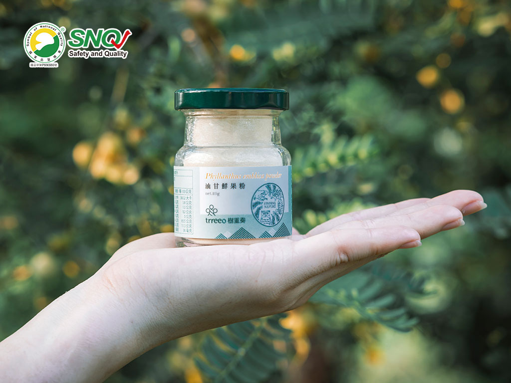 樹重奏的【油甘鮮果粉】為全國唯一榮獲SNQ國家品質標章認證的油甘製品。