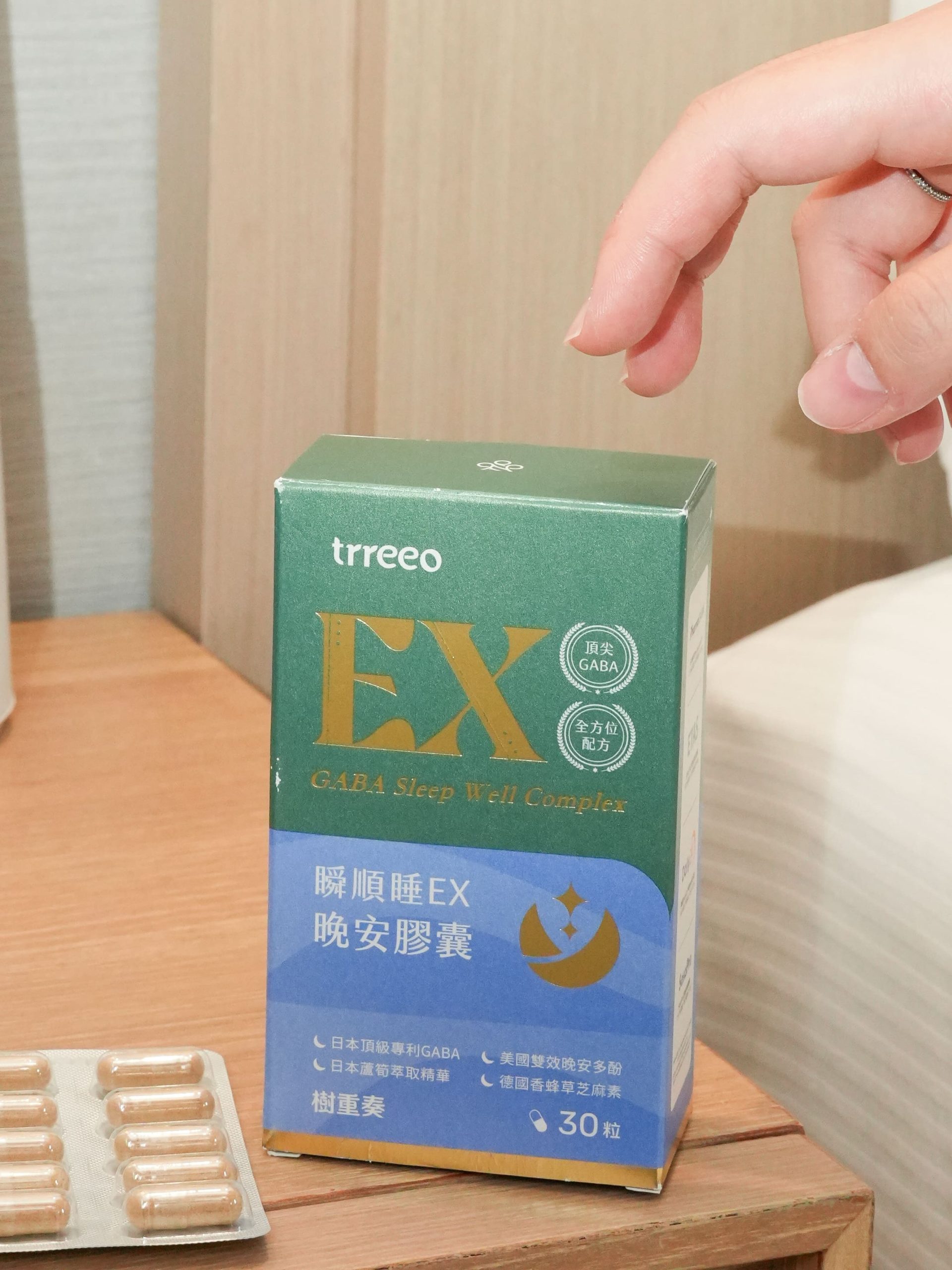最近我開始改用的是,樹重奏的瞬順睡EX晚安膠囊真的讓我重新回到好眠的感覺。