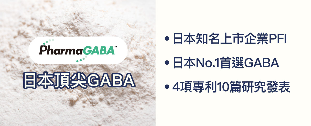 PharmaGABA™為品牌GABA,來自於日本大廠PFI,因品質精良、具科學驗證,為第一個通過台灣法規的合法GABA,兼具有效性、信賴度與安全性。 此配方在日本GABA市場市占率極高,有超過150項訴求放鬆、舒壓與幫助入睡的知名產品,指名添加此GABA。
