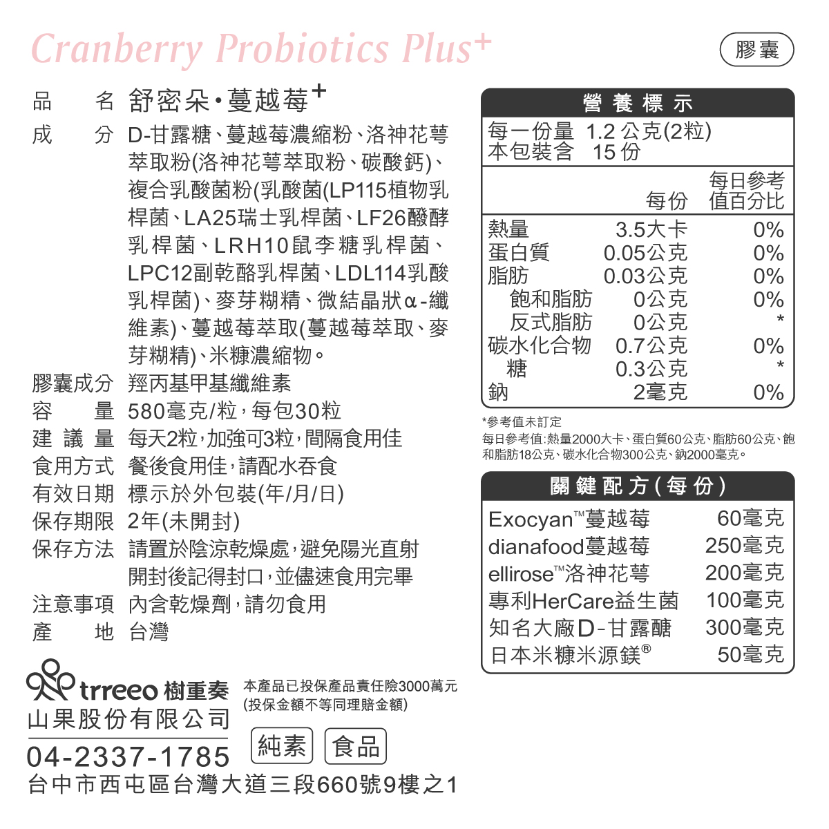 • 舒密朵·蔓越莓 X2入 (30粒/包)