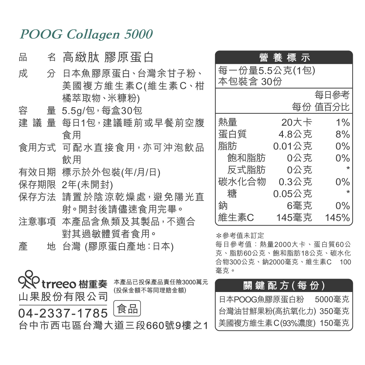 • 日本大廠POOG魚膠原蛋白5000mg,日本製高規