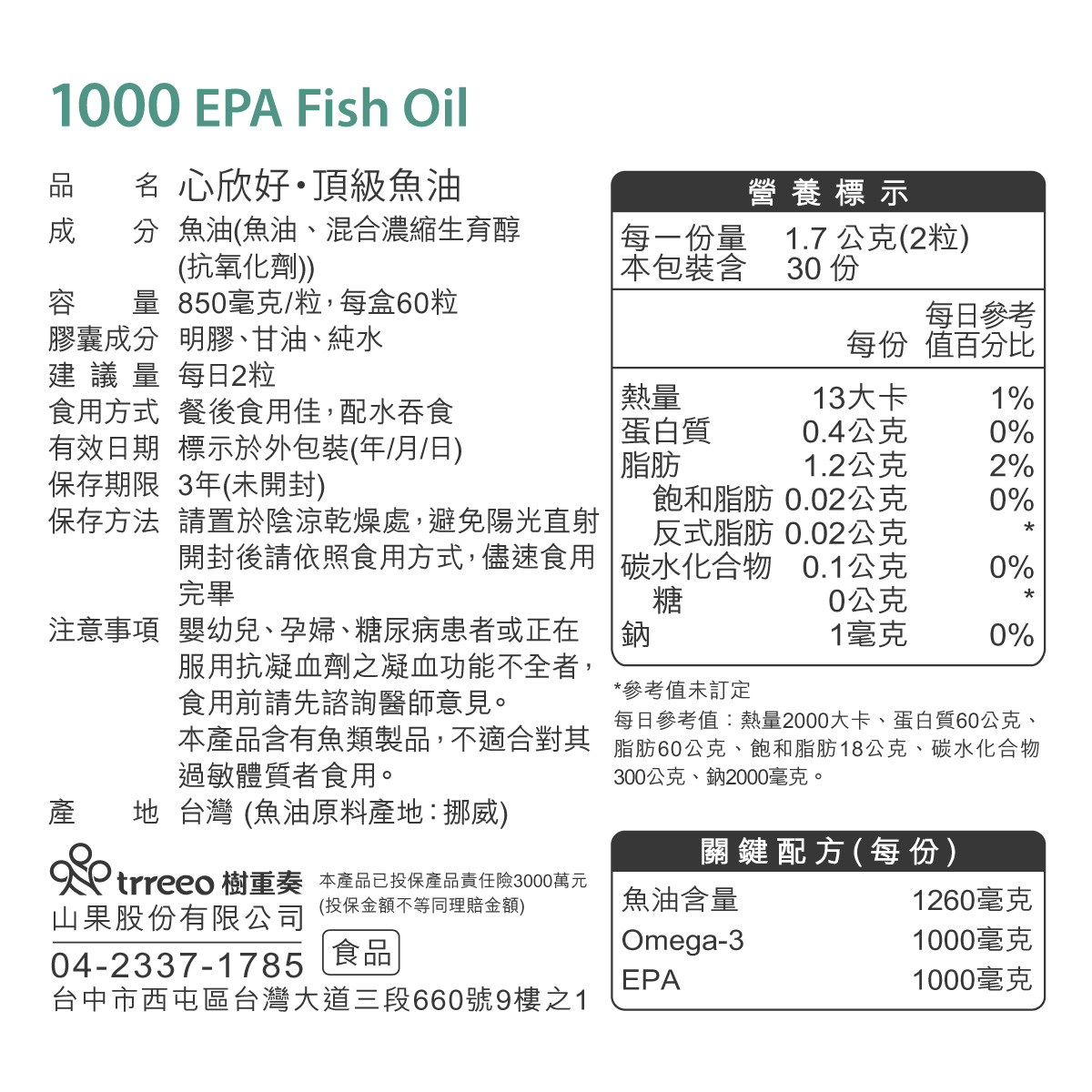 • 心欣好·頂級魚油 X1入 (60粒/盒)