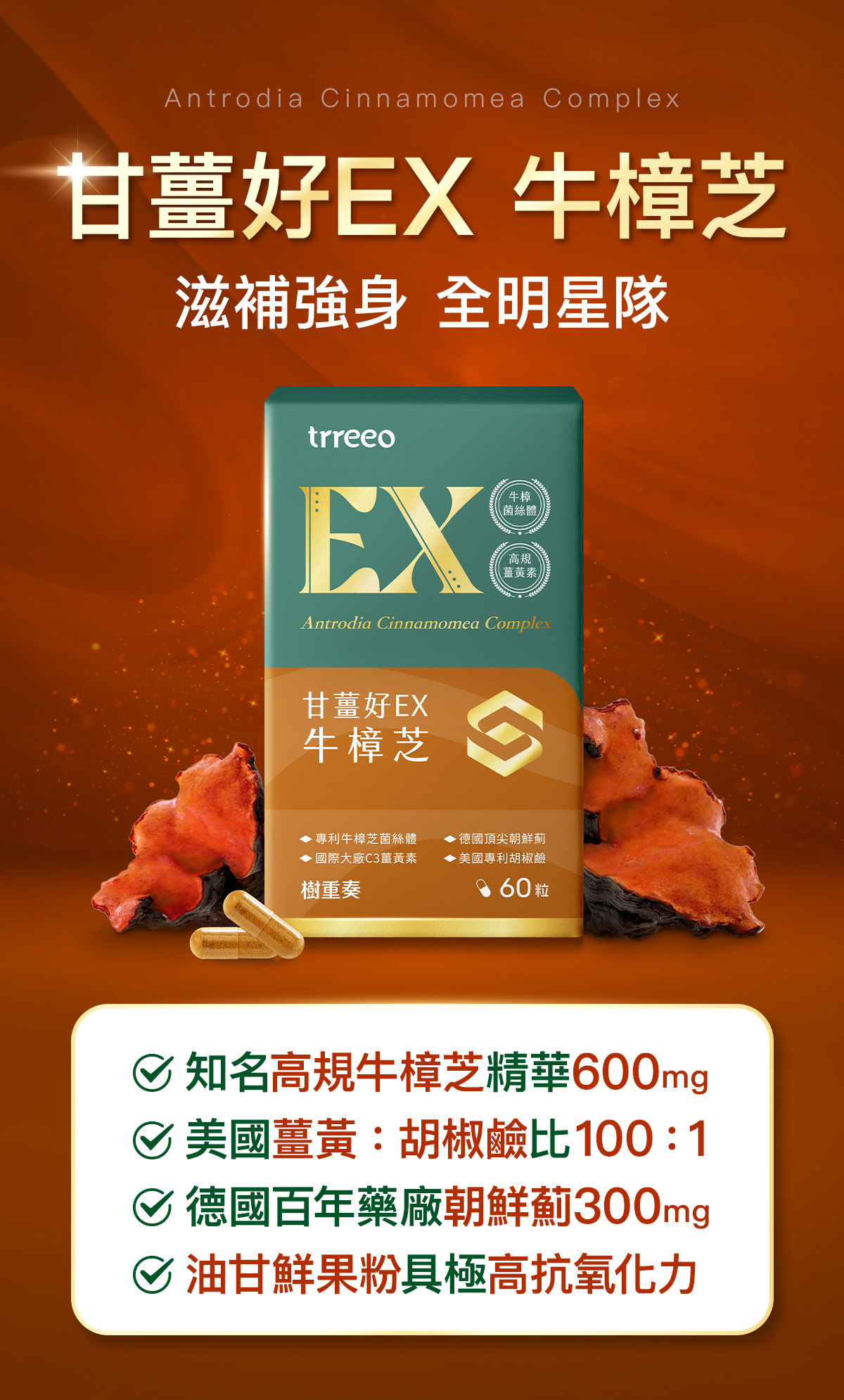 • 甘薑好EX 牛樟芝 X1入 (60粒/盒)