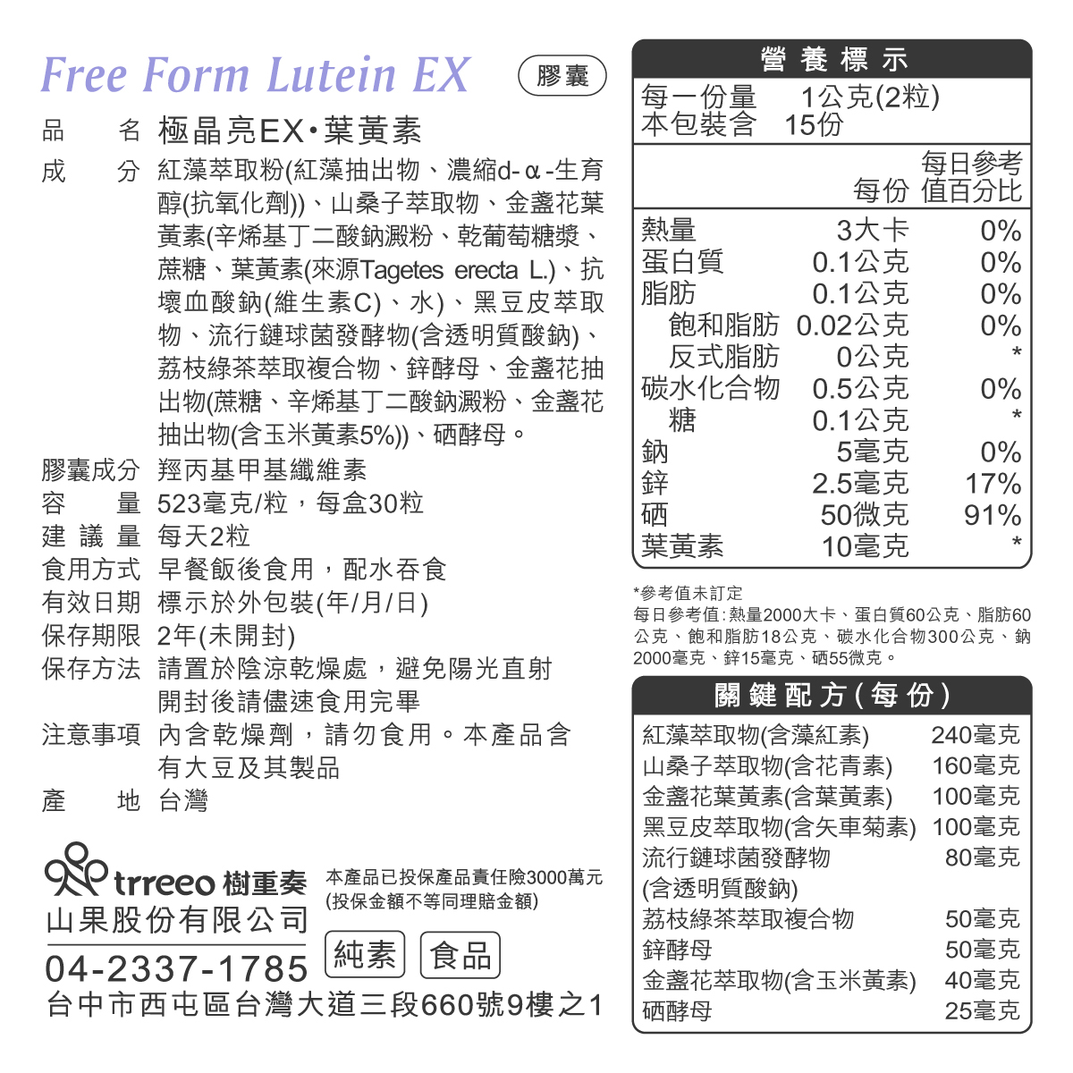 • 美國FloraGLO®游離型葉黃素100mg,純量10mg